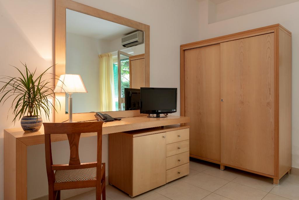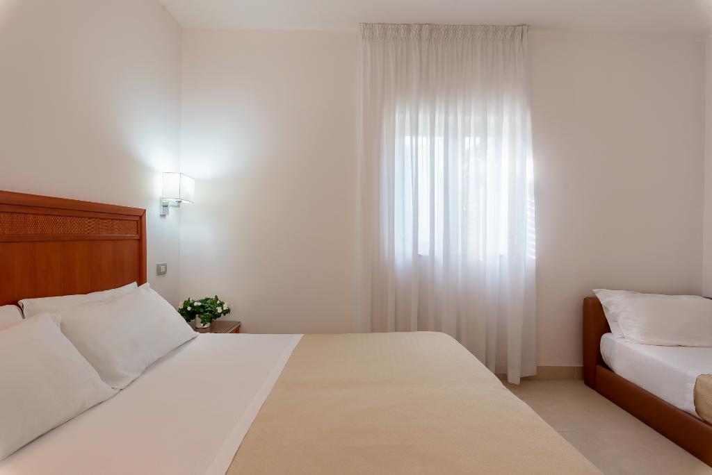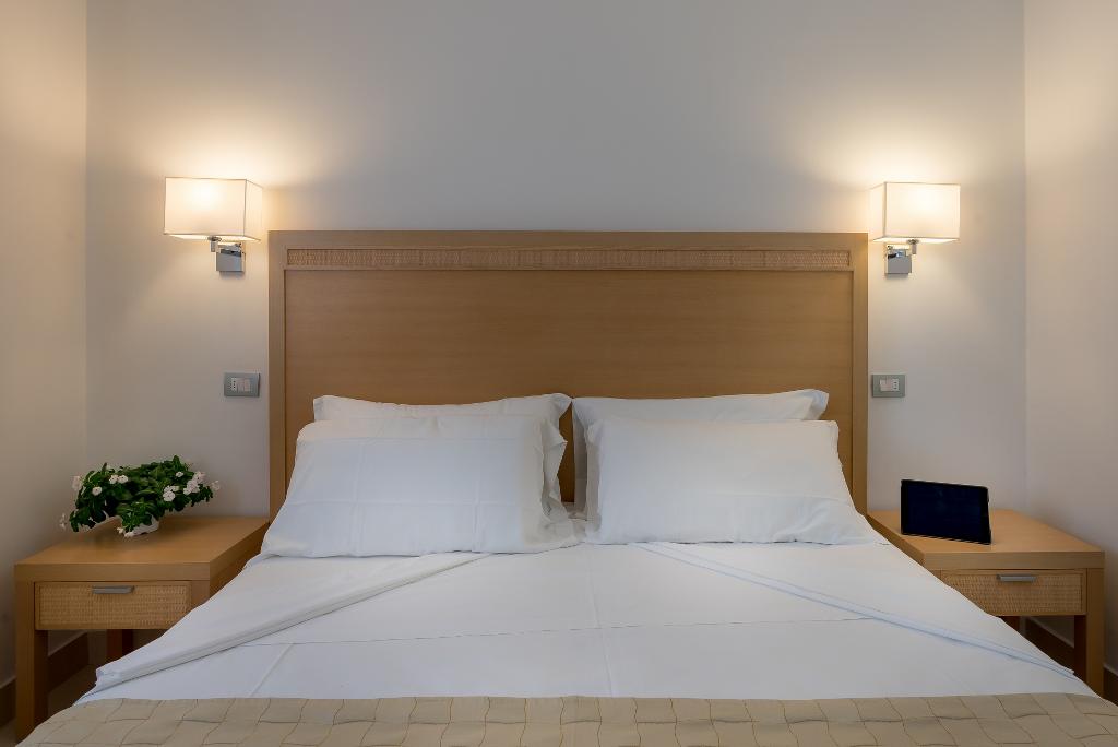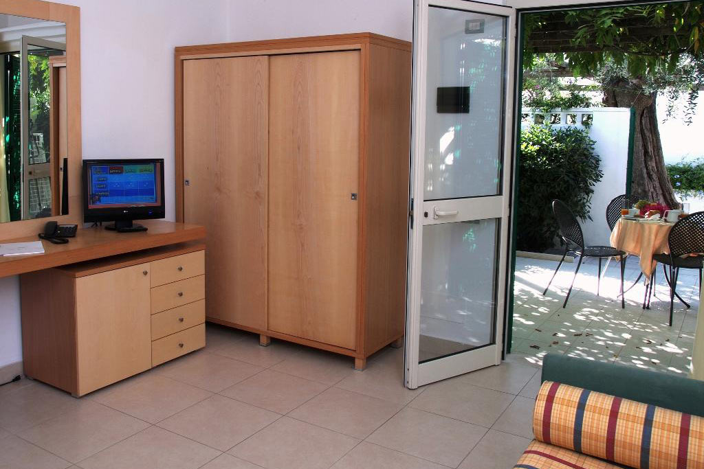 Tutte le camere – Comfort e Family Room –dispongono di patio esterno, balcone o veranda e sono dotate di aria condizionata, mini-frigo, tv a schermo piatto, telefono, asciugacapelli e cassaforte. Le Family Room dispongono in più di un giardino e un soggiorno con divano letto e un letto aggiuntivo, per un massimo di 5 ospiti. Il Wi-Fi è disponibile gratuitamente sia in camera che nella hall, presso la Zona Servizi.
